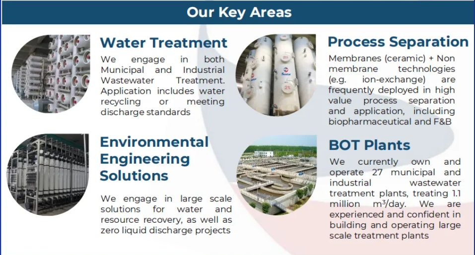 公司已形成以膜技術創(chuàng)新為驅動力的膜技術應用和水務投資運營兩大業(yè)務板塊,核心業(yè)務包括膜法水處理、工業(yè)料液分離、環(huán)境工程、水務投資運營,可以為傳統(tǒng)工業(yè)生產過程的升級改造提供清潔生產與綠色制造的手段與方法,為過程工業(yè)的分離純化與廢水資源化提供基于膜技術應用的創(chuàng)新解決方案。